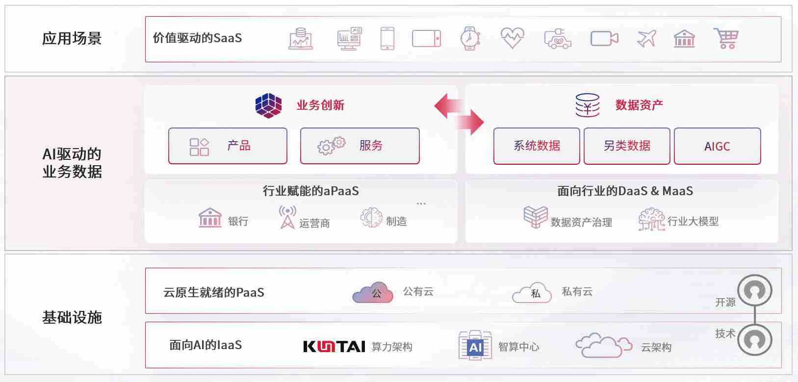 数字时代,,围绕企业数字化转型的关键要素,,,,NO钱包数码开创性的提出数云融合战略和技术体系框架,,,着力在云原生、、、数字原生、、、、AI原生和信创产业上架构产品和服务能力,,,,为处在不同数字化转型阶段的快消零售、、汽车、、金融、、、医疗、、、政企、、、、教育、、运营商等行业客户提供泛在的敏捷IT能力和融合的数据驱动能力,,构建跨界融合创新的数字业务场景和新业务模式,,,,助力企业级客户建立面向未来的核心能力和竞争优势,,全面推动社会的数字化、、、智能化转型升级。。